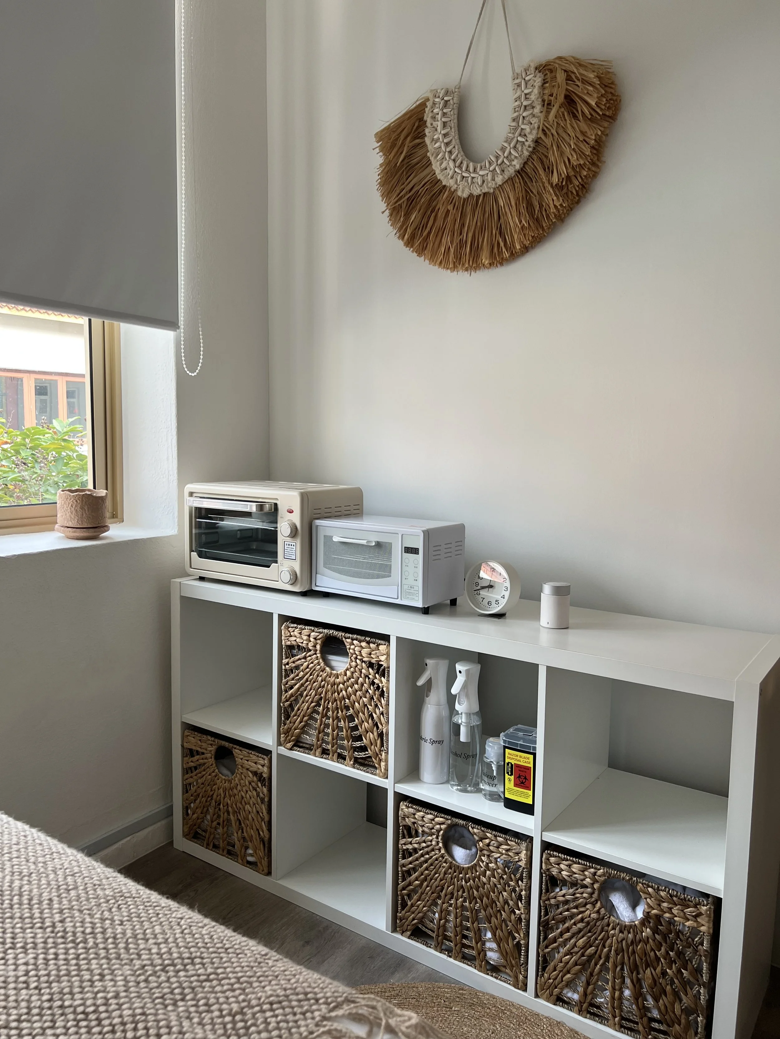 Your shelves come thoughtfully stocked with everyday essentials — tissues, cotton, alcohol spray, and more. Everything you need to maintain a clean, safe, and professional space is right at your fingertips.